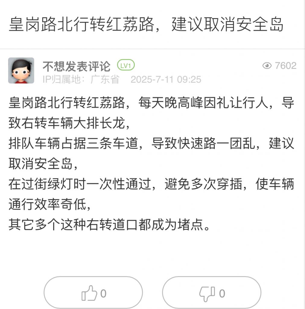 23. 帖文《皇岗路北行转红荔路,建议取消安全岛》