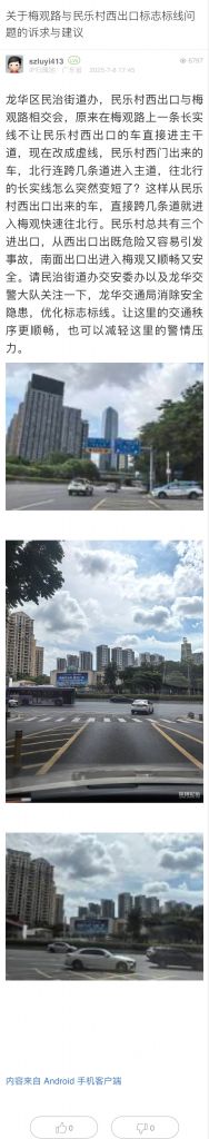 11. 帖文《关于梅观路与民乐村西出口标志标线问题的诉求与建议》
