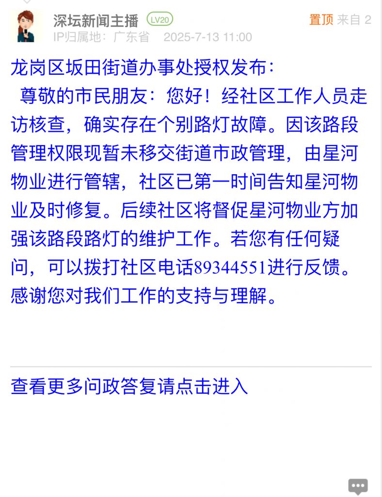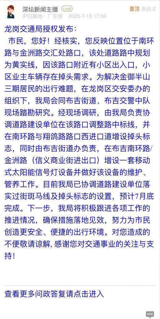 各职能单位如需对网友反映的问题进行回应,可在深圳论坛注册官方账号并通过认证,回帖进行回应。