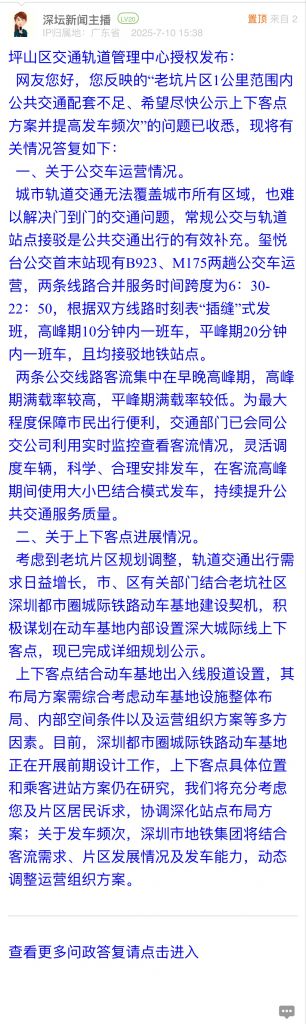 13. 帖文《坪山区老坑社区居民出行不便,亟需优化轨道站点位置》