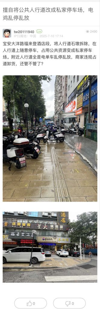 19. 帖文《罗湖区乐园路设置的即停即走车位非常不合理!严重影响片区交通秩序》
