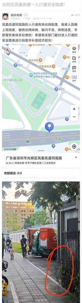 9. 帖文《光明区凤凰街道一人行道安全隐患!》