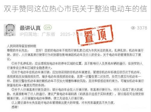 20. 帖文《双手赞同这位热心市民关于整治电动车的信》