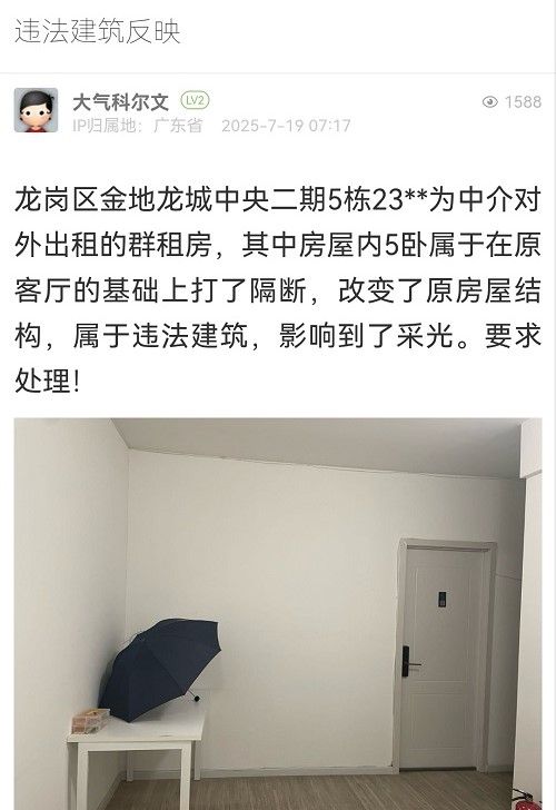 1. 帖文《投诉罗湖区莲塘街道畔山路9号长期明显违建!》