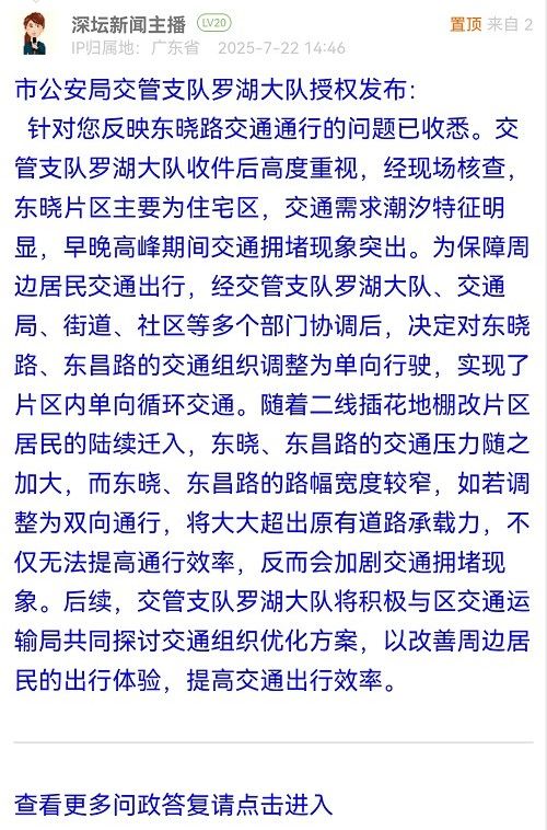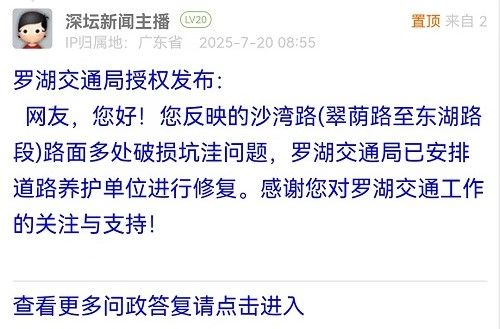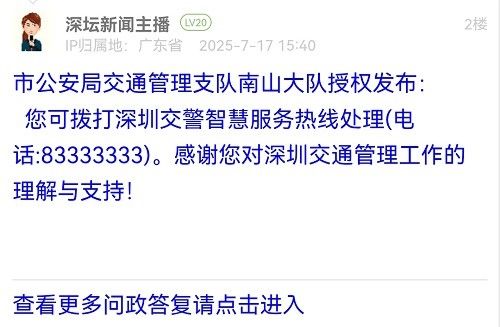 各职能单位如需对网友反映的问题进行回应,可在深圳论坛注册官方账号并通过认证,回帖进行回应。