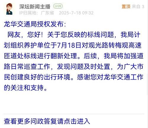 29. 帖文《关于罗湖区深南东路标线脱色不清晰问题反馈》