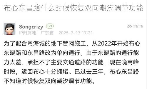 17. 帖文《布心东昌路什么时候恢复双向潮汐调节功能》
