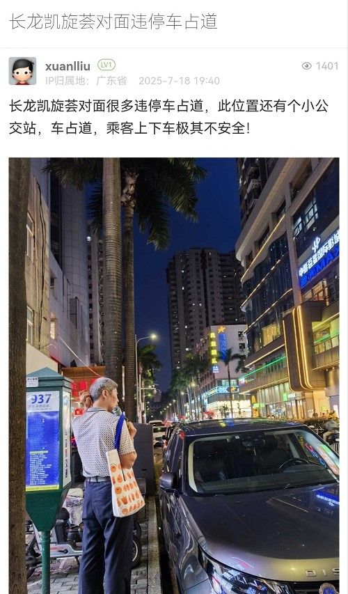 25. 帖文《长龙凯旋荟对面违停车占道》