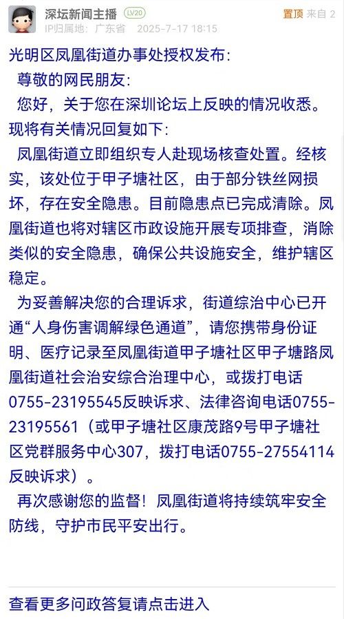 再次感谢您的监督!凤凰街道将持续筑牢安全防线,守护市民平安出行。