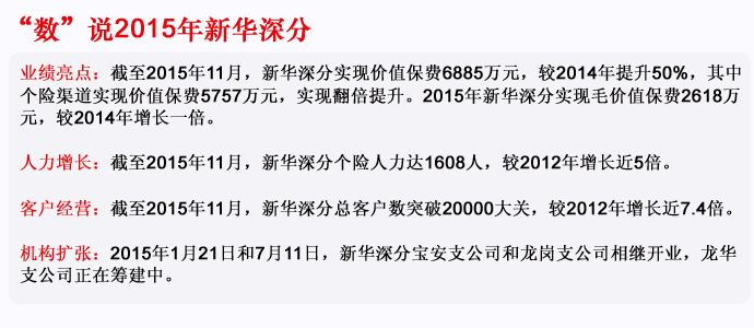 新华人寿保险股份有限公司深圳分公司(新华深分)进入深圳仅仅四年时间,秉持“创造价值、稳健持续”的经营理念,凭借拼搏、专注、热忱的奋斗精神,致力于为客户带来覆盖全生命周期的优质专业服务,在市场上异军突起,创造了一个又一个成长“奇迹。