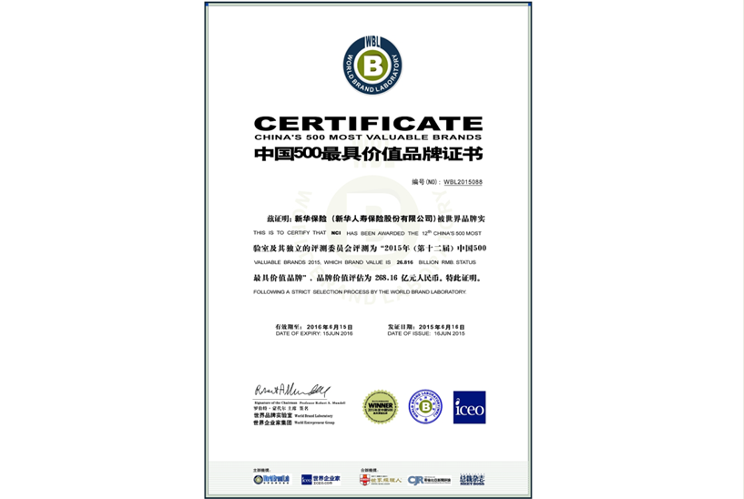 12月28日,由世界品牌实验室主办的2015年“中国品牌年度大奖”评选正式揭晓。新华保险再次获颁2015年“中国保险行业十大影响力品牌”称号。