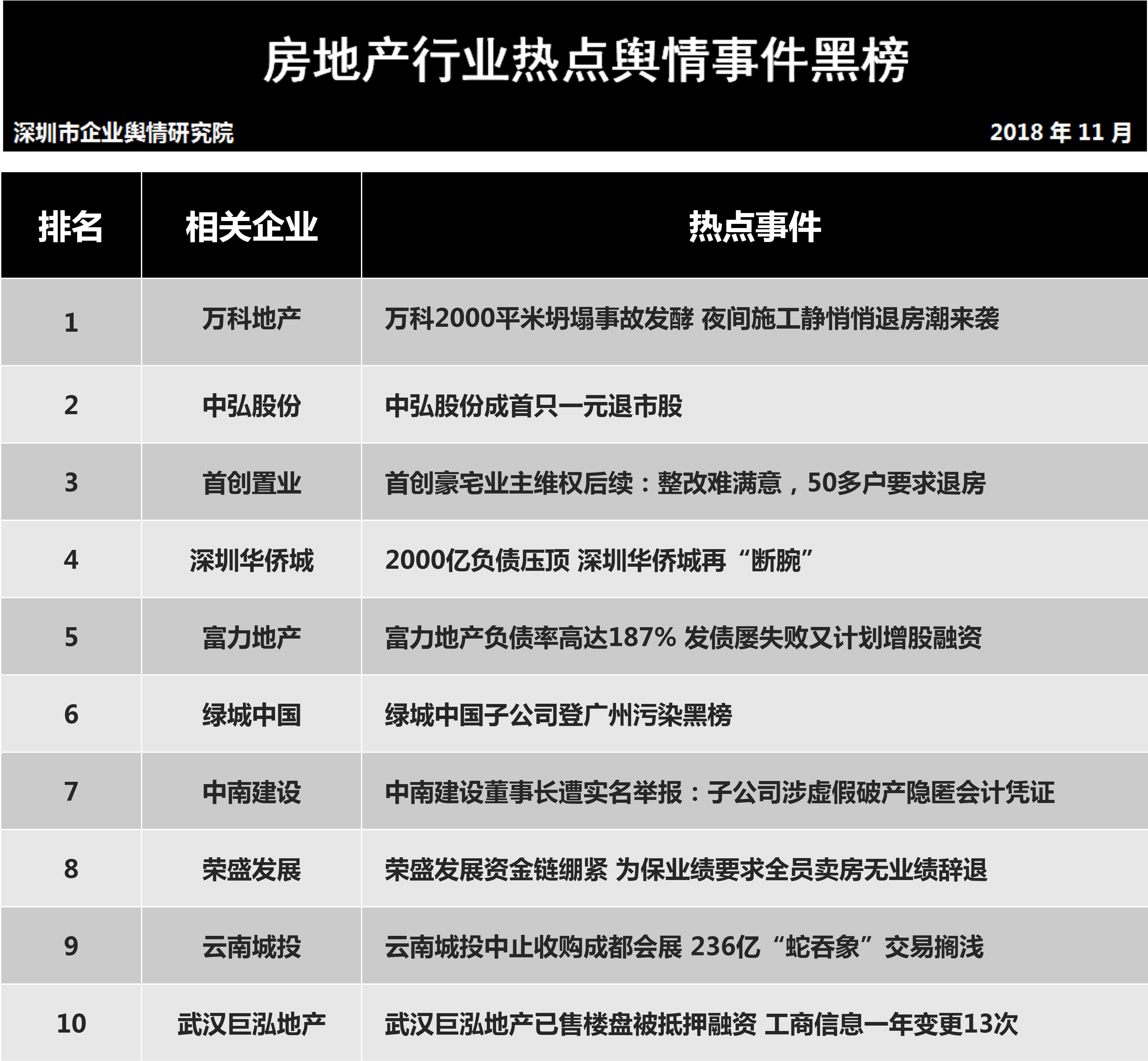 1月7日,深圳企业舆情研究院发布第十一批企业舆情榜单。本次榜单重点聚焦房地产及医药保健两个行业。