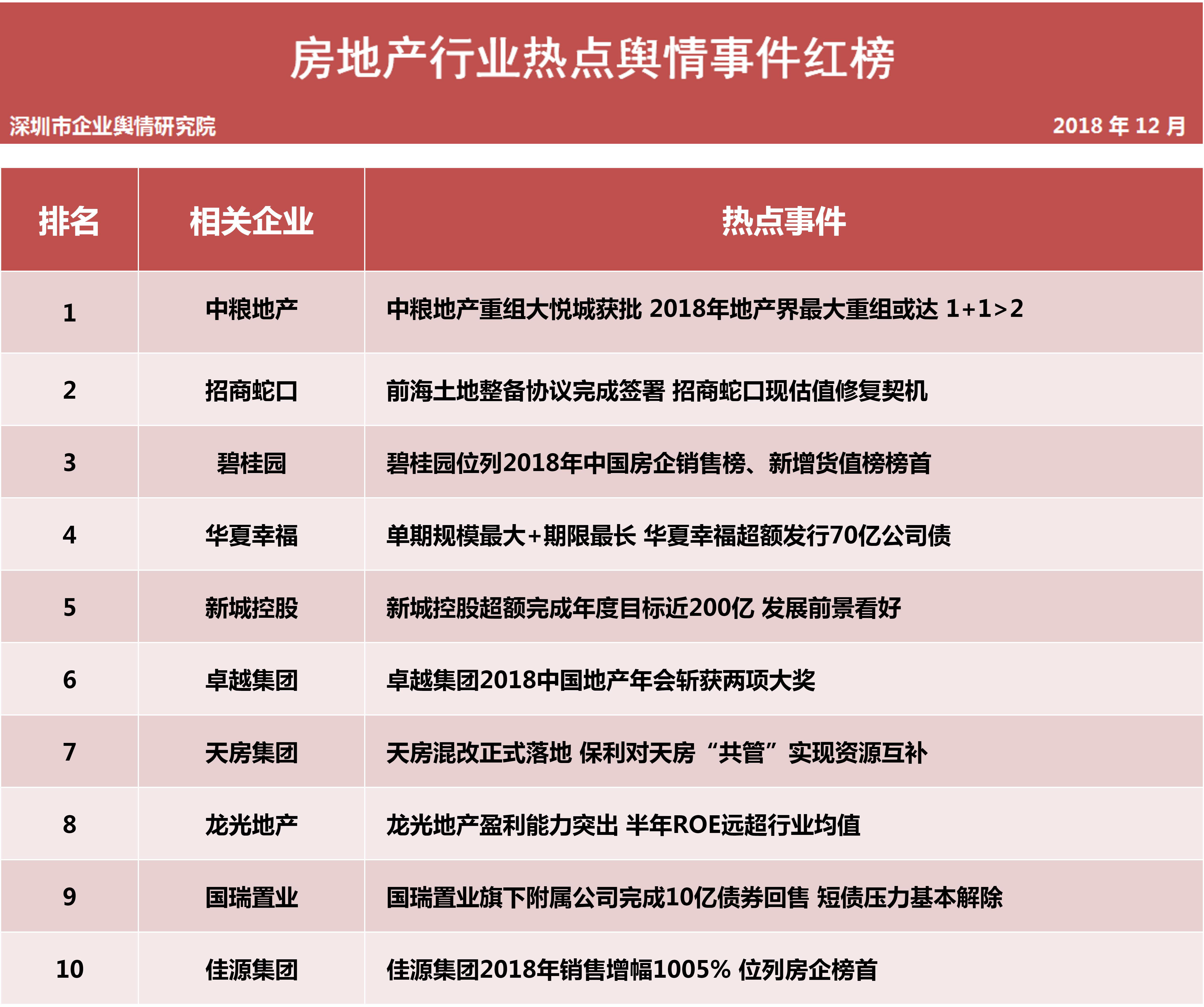 1月31日,深圳企业舆情研究院发布第十二批企业舆情榜单。本次榜单重点聚焦房地产及医药保健两个行业。