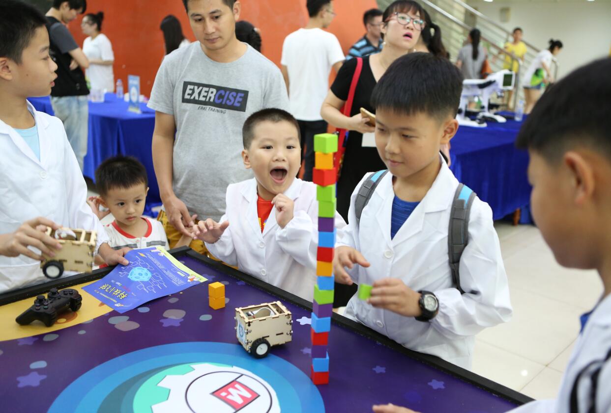 9月2日下午,由深圳新闻网和华夏银行深圳分行联手推出的“科技小飞侠”少儿科技创新体验活动在深圳少年儿童图书馆举行。来自华夏银行的近百个VIP持卡人家庭参与了本次活动。