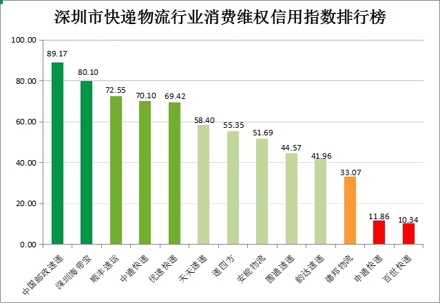 深圳市消费者委员会发布快递物流行业消费维权信用指数排行榜