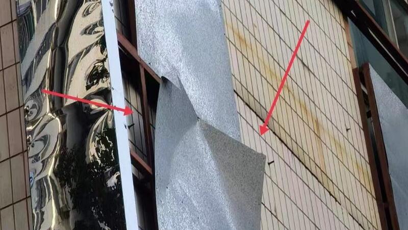 松泉山庄外墙铁皮松脱存隐患,已督促责任人拆除