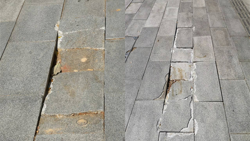 松岗人行道地砖破损盼修复,官方:核实情况后处理