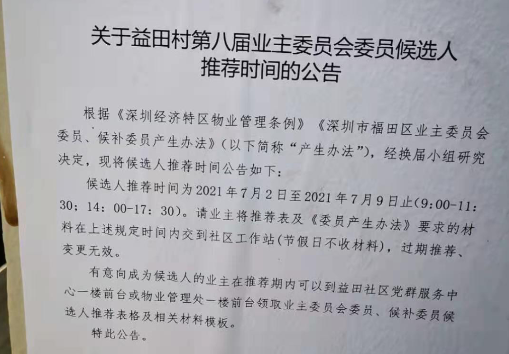 业主质疑益田村业委会选举,回应:欢迎依法反馈