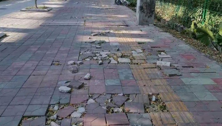 宝源路人行道有多处破损,回应:本周内进场修复