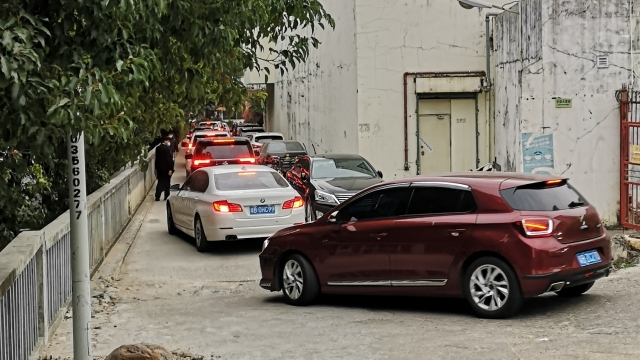竹园宾馆旁道路变停车场行人通行难,回应:年后完工