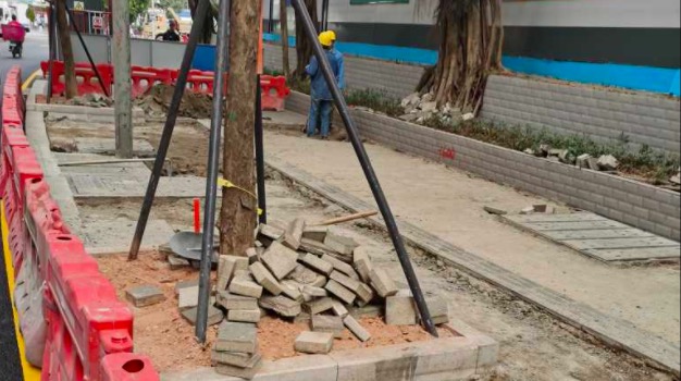 东湖路人行道反复开挖,回应:因质量存在瑕疵,故返工处理