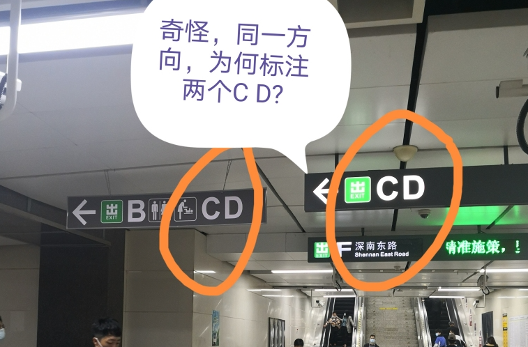 大剧院地铁站出口指示牌存在重复指引的问题,回应:确实存在,已整改