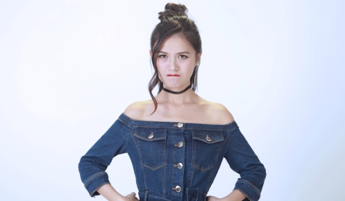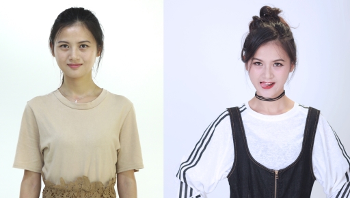 化妆师:西瓜红色系腮红和唇色少女感满分,别的部分妆感较淡,少女妆容不适合大浓妆。 发型师:高高的丸子头元气满满;半丸子头轻松又有女人味,随手放下了一缕,增添随性的感觉。 服装师:背带裤和短裙都拉长了腿部线条,身材比例看起来更好;一字肩短裙露出锁骨,性感又可爱。