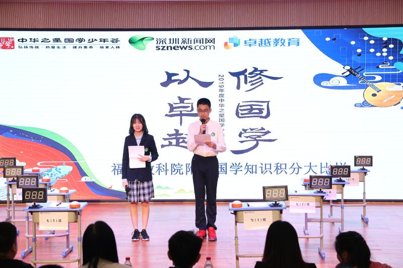 4月1日,福田区教育科学研究院附属中学举行国学知识积分大比拼活动,该活动是“2019年度中华之星国学少年荟”的校园分会场活动之一。