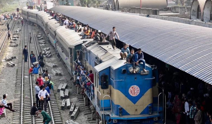 孟加拉的“疯狂火车” 民众为省钱蹲在两节车厢的挂钩处
