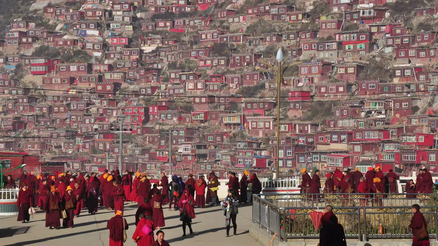 震撼!世界最大佛学院建在海拔4000米的山谷 密密麻麻的僧舍连绵数公里