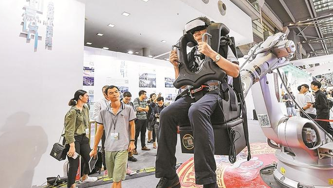 在本届文博会上,强调体验、互动性的“文化+科技”项目吸引了不少观众参观。