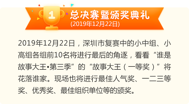 让阅读成为动人的风景,让故事的魅力感动深圳。为助力建设良好的青少年阅读环境,激发学生阅读兴趣,倡导亲子阅读,共建和谐家庭关系。2020年,第二十一届深圳读书月主题活动“谁是故事大王·第四季”在共青团深圳市委员会、深圳市关爱行动组委会办公室的指导下再出发。更长的活动周期,更丰富的参与形式,更专业的赛制,“谁是故事大王·第四季”等你来解锁与挑战!