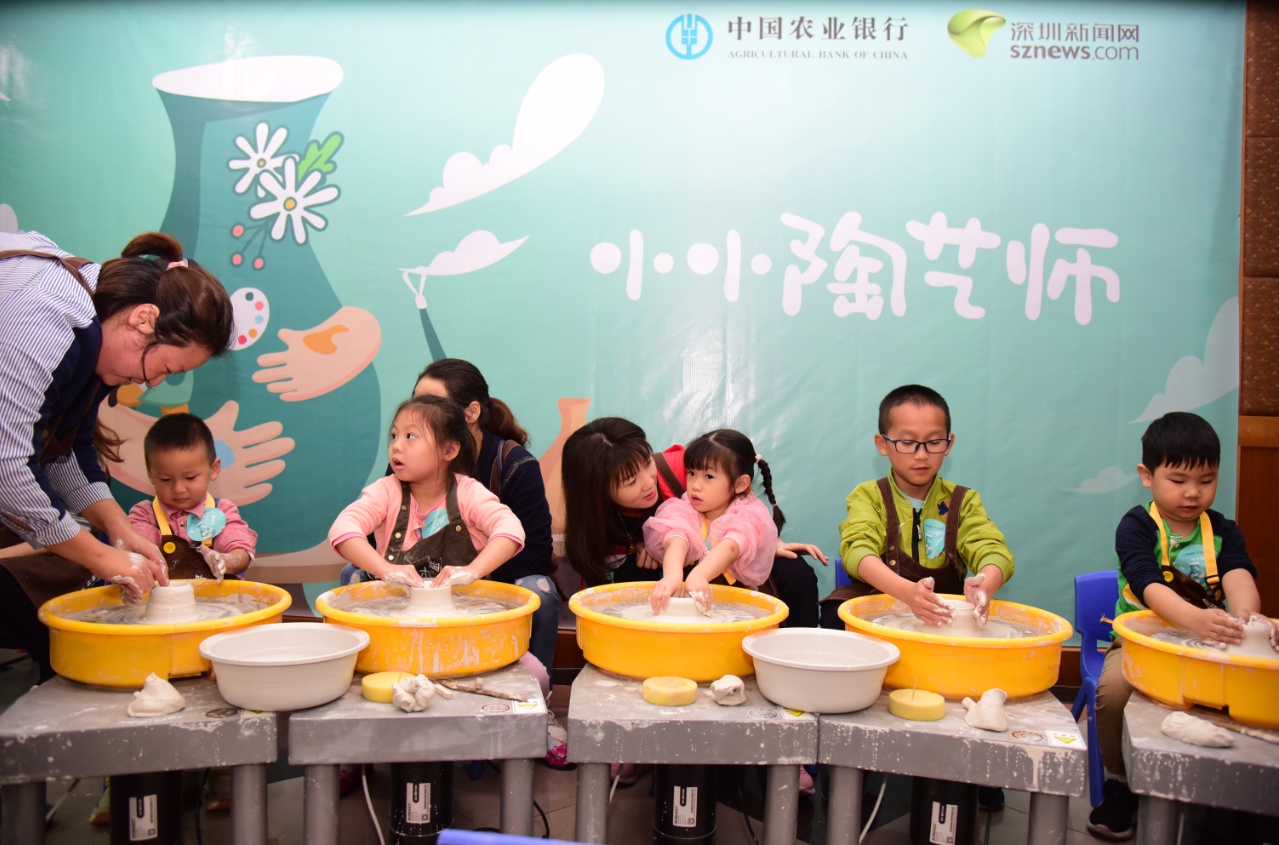 今日,由中国农业银行深圳市分行和深圳新闻网联合主办的“小小陶艺师”亲子活动在深圳商报社大厦举行。小朋友们在家长的陪伴下发挥想象,用自己灵巧的双手,创造出一件件造型独特、妙趣横生的陶艺作品。