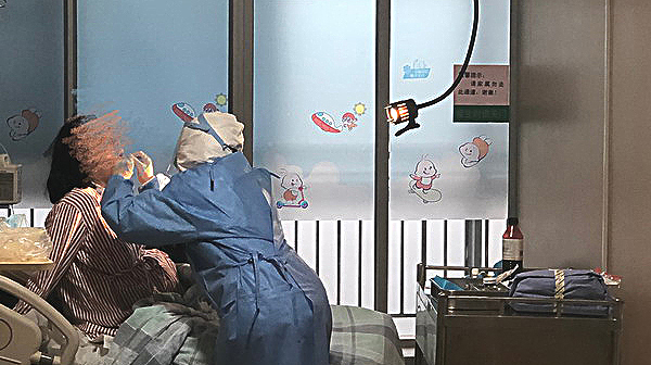 陈浠和其他一线白衣战士在市三院隔离病房为抗击疫情加油