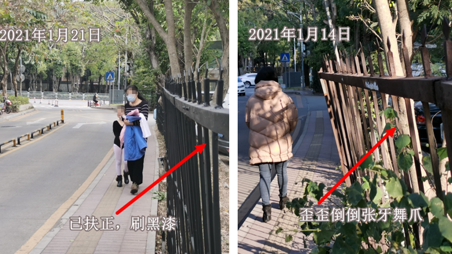 此前因找不到代建单位而无法移交主管部门管养的竹香一路,仅仅过了一周的时间,歪歪倒倒的围栏扶正了,人行道也即将拓宽。