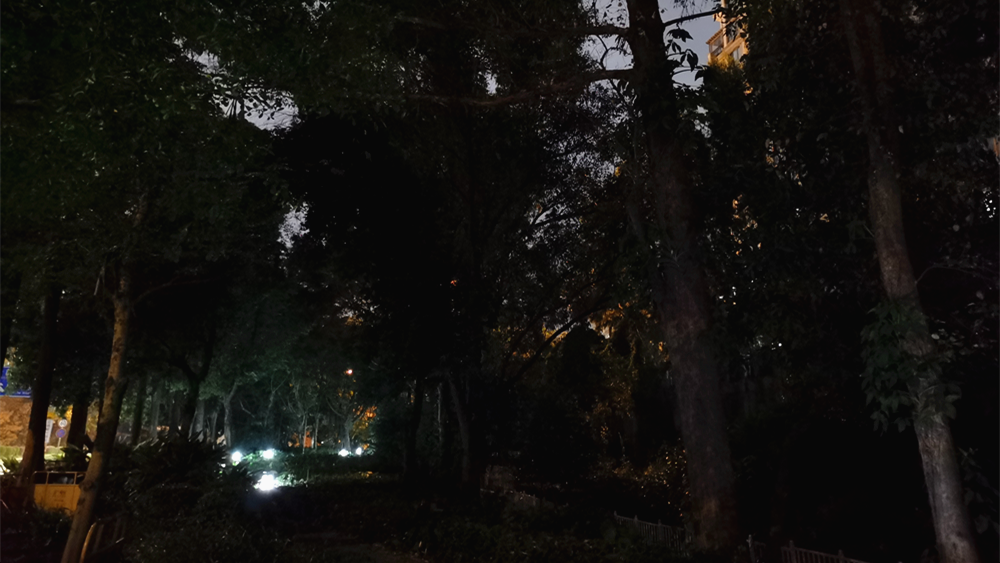 记者从梅林一村附近进入梅林绿道,前行1000米左右,梅林水库附近确实有一段缺乏照明的路段,绿道两旁都装有路灯,但没有正常运行。